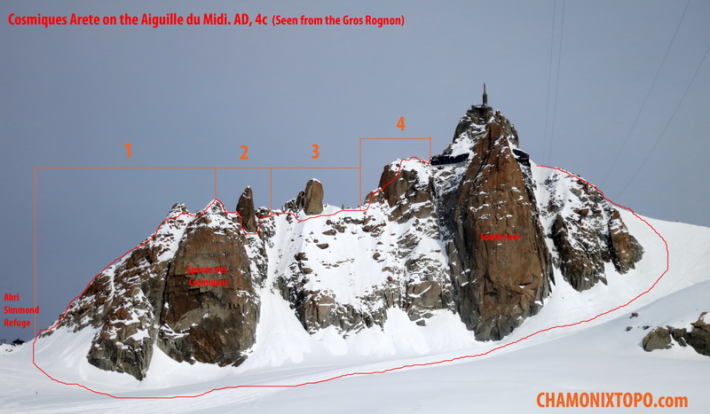 Восхождение на Эгюий Дю Миди по популярному классическому маршруту - гребню Космик (3А).