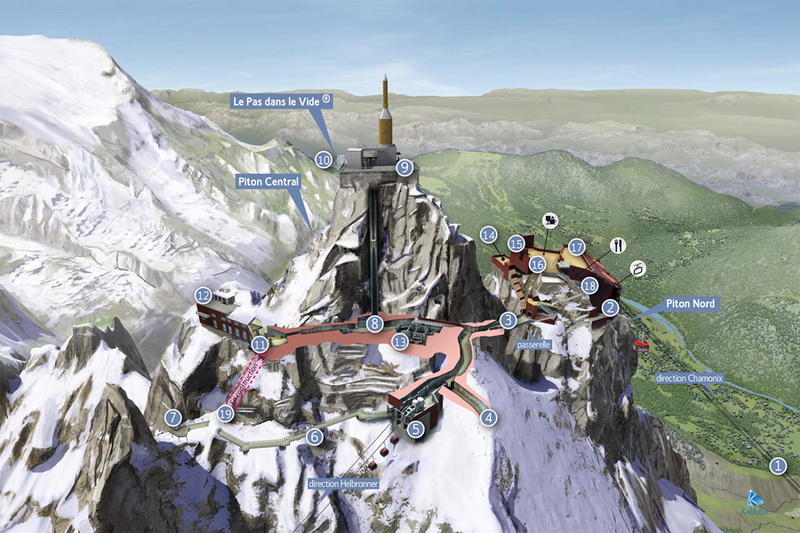 На вершине и внутри скалы Эгюий Дю Миди (Aiguille du Midi 3842 м ) выстроен уникальный комплекс. И у нас будет возможность его исследовать.